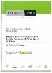 The Paris Declaration and Aid Effectiveness : Effect of Implementation on Civil Society Funding and Policy Space in Ghana : An Alliance 2015 Report
