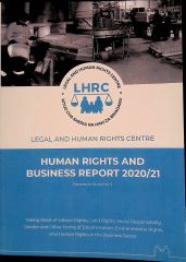 Legal and Human Rights Centre (LHRC) has on 29th July, 2021, launched the Tanzania Human Rights and Business Report that provides the status of human rights in the business field in Tanzania Mainland in 2020. This is progressive report the last year report on assessing corporate compliance with labour laws and standard, the corporate responsibility to respect human rights, state duty to protect human rights and remedy for violation of human rights in the business sector in Tanzania Mainland for the financial year 2020/21. The main objective of the report is to shed light on the situation of human rights and business in Tanzania in the financial year 2020/21; to establish progress between the present and the previous years on business compliance with labour and human rights. The report is to be used as an advocacy tool to advocate for and promote human rights and business in Tanzania. Furthermore, the report provides some useful information on human rights and business in Tanzania and can be used for academic purposes.
